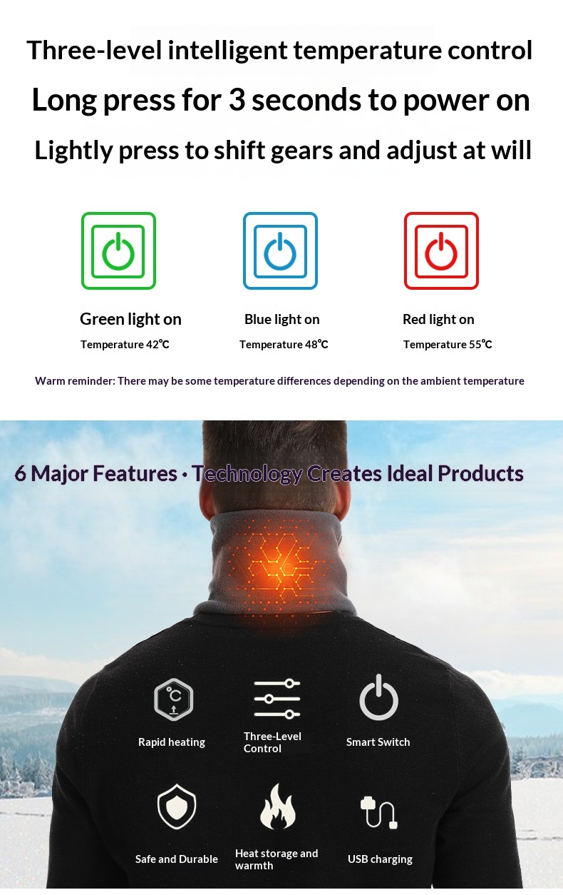 Descrição: Mantenha-se aquecido e elegante onde quer que vá com nossa versátil Gola Aquecida. Projetada para conforto e praticidade, esta gola é alimentada por uma bateria de 3500 mAh e funciona com 5V-2A, fornecendo calor constante quando você mais precisa. Tamanho único, ideal para aventuras ao ar livre, esportes ou uso diário em dias frios.